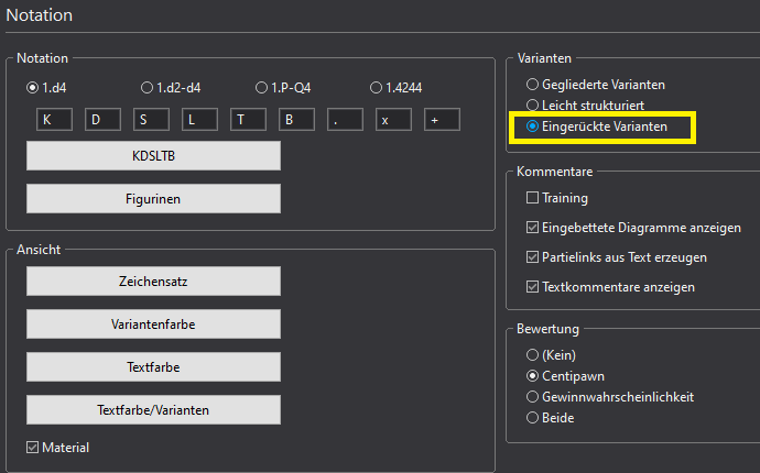 Menü Datei - Optionen - Notationen - Varianten - Eingerückte Varianten.