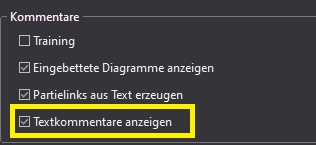 Aktivieren Sie hier die Einstellung Textkommentare anzeigen.